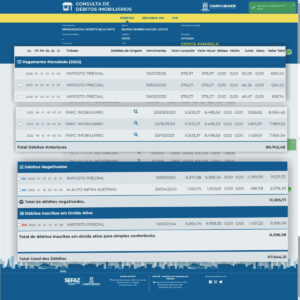 No site da prefeitura, o imóvel já está averbado em nome do vereador Papy Neto, que na condição de contribuinte está em débito com a Fazenda Municipal, com certidão Positiva de Débitos Gerais.