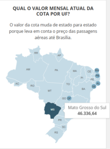 Na Assembleia Legislativa de Mato Grosso do Sul (ALMS), por exemplo, o valor da cota mensal está entre os mais elevados do país entre as 27 casas estaduais, incluindo a do Distrito Federal.