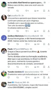 “Ingenuidade tem limites. Hoje, se você ainda está nessa, das duas uma: ou é conivente/cúmplice e deveria estar preso(a), ou é um verdadeiro néscio(a). Golpistas não terão anistia nenhuma. O nosso Brasil precisa evoluir e você, querendo ou não, gostando ou não, faz parte dele”, declarou.