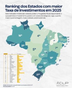 Na infraestrutura, o Estado registrou a sexta maior taxa de investimentos em 2025, segundo o CLP, além da terceira melhor qualidade de rodovias do Brasil.