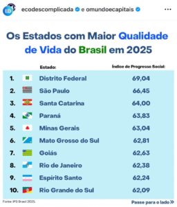 A consolidação econômica e social se evidencia ainda mais quando se observam os principais pilares da competitividade. Em 2025, Mato Grosso do Sul foi apontado como o nono estado mais competitivo, com destaque para segurança pública, sustentabilidade social, educação, infraestrutura e solidez fiscal.